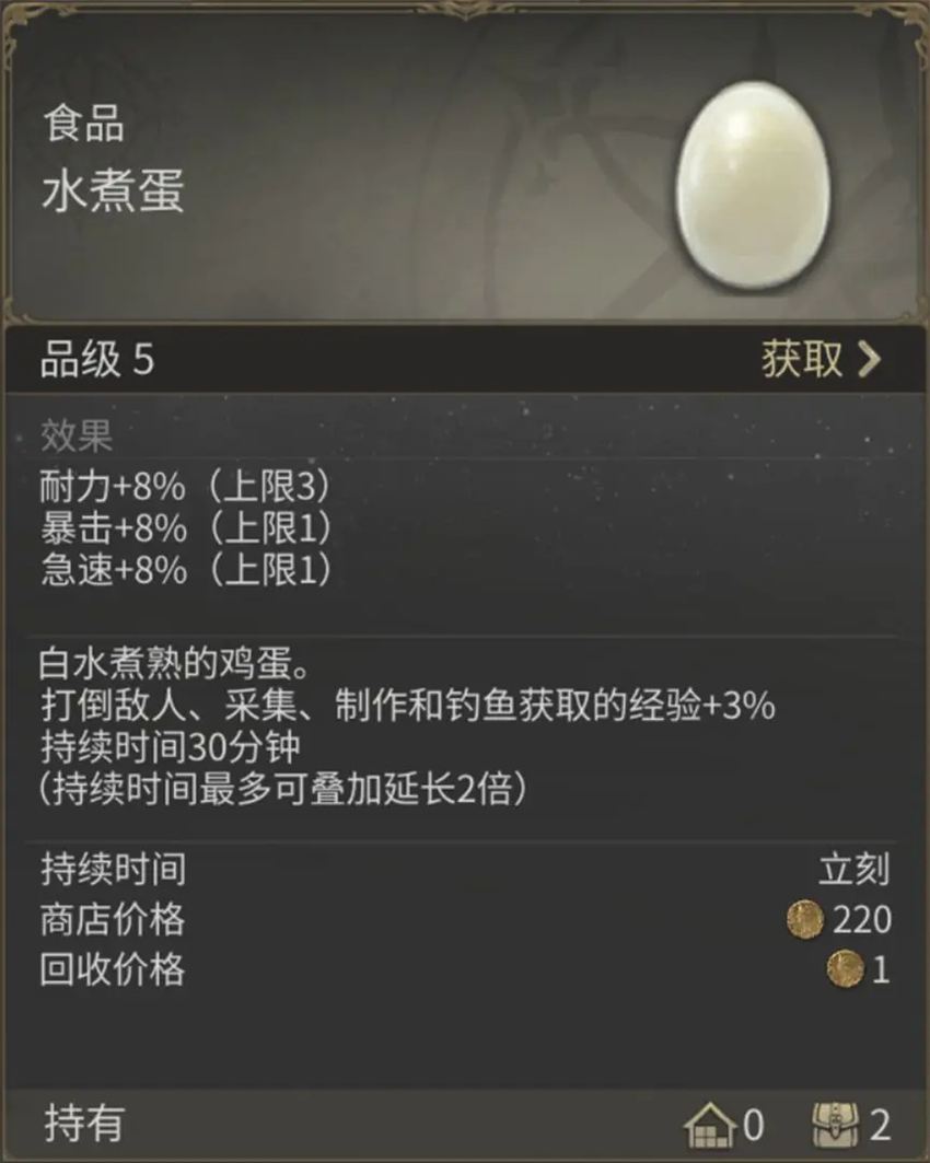 3)所有的食品都可以使打倒敌人、采集、制作和钓鱼获取的经验增加3%。