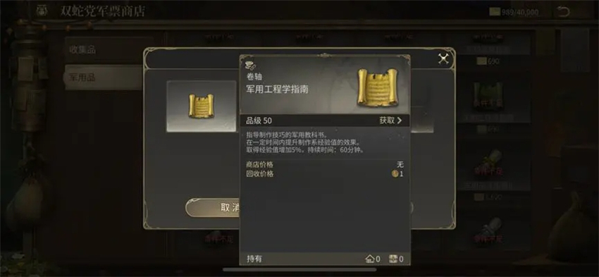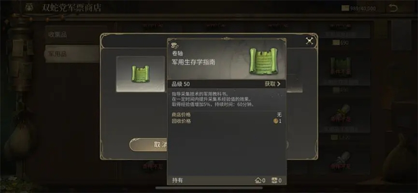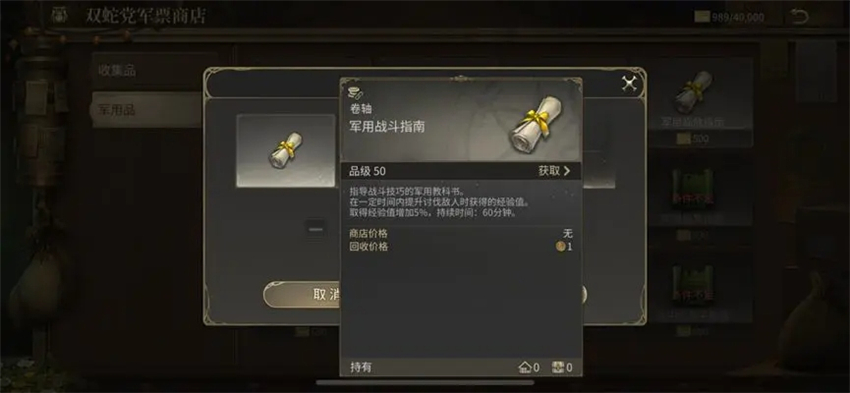 5)军用指南,提升军衔后在商会的军票商店可以兑换各种类型经验加成的军用指南。