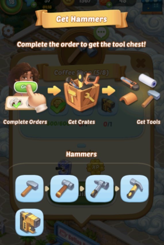 当你收集到一定数量的金币或者工具时,你可以点击相应的页面完成房屋建造