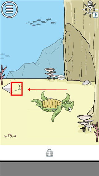 3、抓住乌龟,乌龟给到第二页龙卷风,龙卷风页面,左上角的沙子里有笼子,用笼子罩住水母即可。