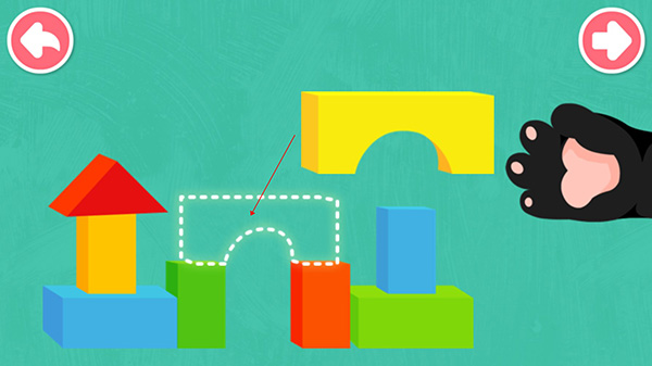 在道完歉之后,就需要和企鹅小朋友一起把积木搭好啦,将积木移动到虚线为止即可。