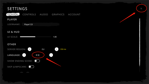 1、如下图所示,这是首次进入游戏时的界面,点击【English】右边的按钮调设语言。