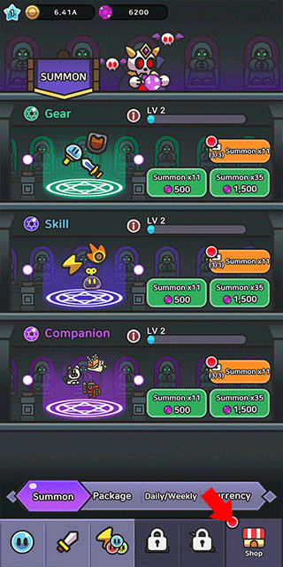 3、打怪过程中会积累不少钻石,别忘了点右下角进入商城抽取装备。