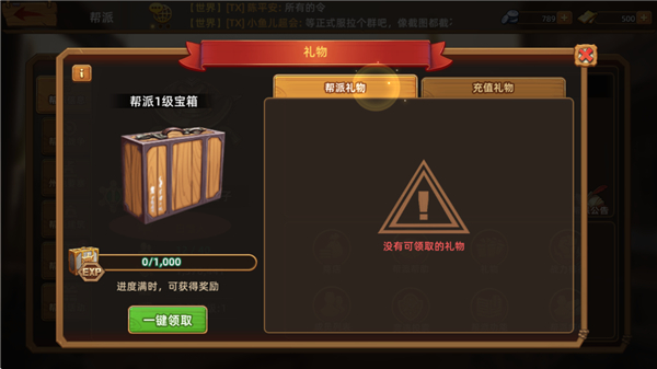 3、在商城购买超值礼包或者击败野外首领都能提供【帮派礼物】,所有统领都可以领取丰厚的奖励。