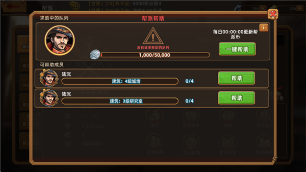 1、与成员相互【帮助】,可缩短建造、研究、治疗等队列的等待时间。