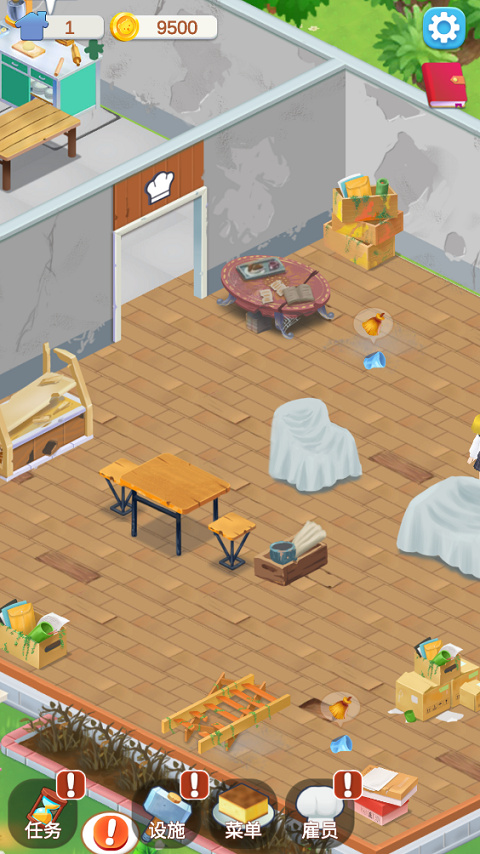 当然,新店开业免不了要打扫,清理店内的环境卫生,可以吸引更多的顾客,当顾客坐下后便可开始点餐,点击顾客头上的气泡即可等待后厨制作,返回厨房点击订单即可送到客人桌前,操作十分的方便。