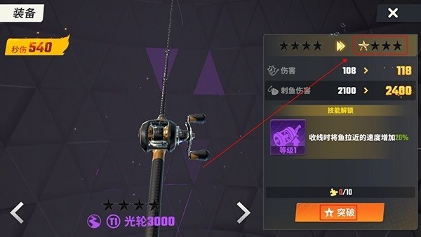 所以在前期就尽量给鱼竿升星