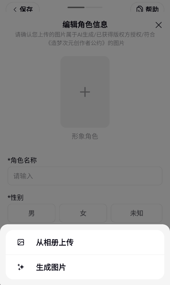5、上传角色形象,可以在相册上传或者直接生成一个AI图片。