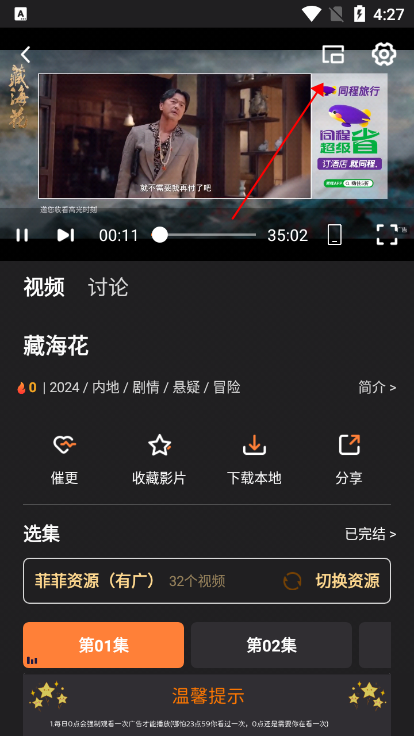 进入喜欢的影视内容,点击右上角投屏即可
