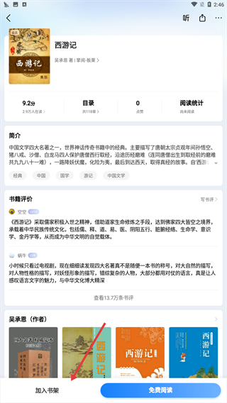 3在书籍的详情页面,找到并点击“加入书架”按钮,即可把该书籍收藏到个人书架中。