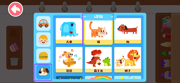 2、在这里可以先选择好要填充的类型,这里选择的是动物类里面的猫。