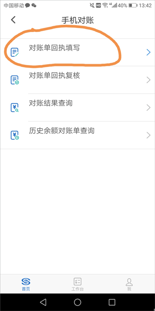 1、操作员一登录app,在首页点击“手机对账”