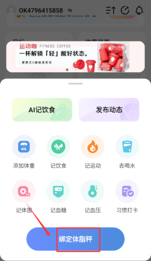 4、通过蓝牙绑定智能体脂秤设备,自动同步体重与体脂率 measurements。